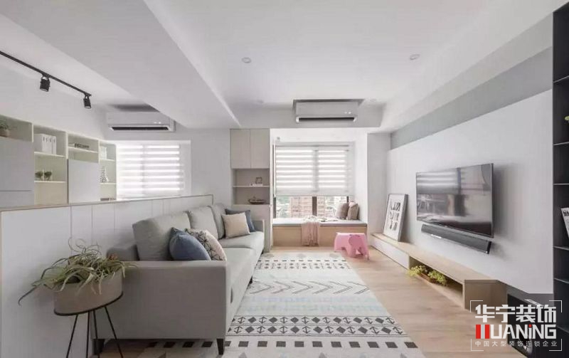 或者直接增加一個儲物矮柜,就可以把客廳從笨重的茶幾中解救出來,騰出不少的活動范圍。