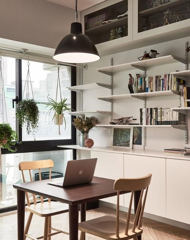 家中有書桌的設(shè)置,在我看來“擱板式”書架是最佳的“搭檔”,在書桌的上方或一側(cè)墻體設(shè)置皆可,它可以不需要“足夠”的面積,也許只是窗戶旁邊的一小段墻體就足夠……它使用起來很方便,收納能力卻不容小覷!