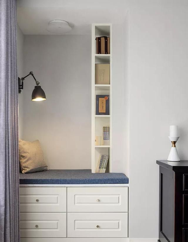 在我看來除了這些常用的位置之外,還有很多位置可以設(shè)計(jì)書架,比如窗戶的兩側(cè)、休閑卡座和書架的結(jié)合設(shè)計(jì)都可以。