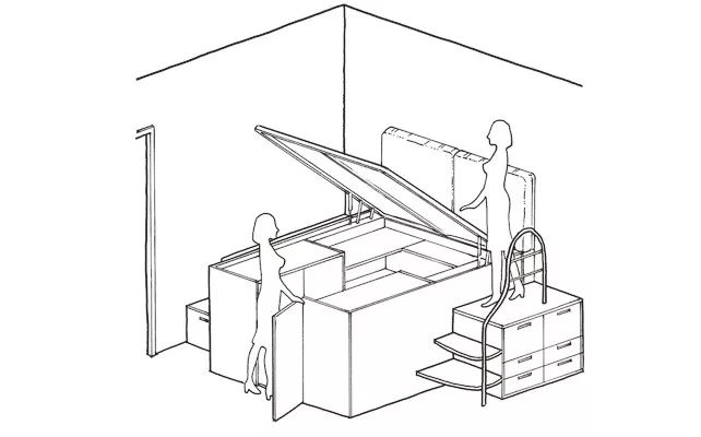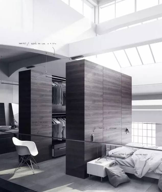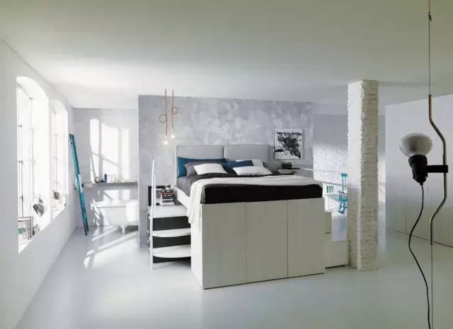 對(duì)于“衣帽間控”來(lái)說(shuō),如果家里空間實(shí)在局限,又不想輕易放棄自己的需求,那就可以參考以下腦洞大開(kāi)的衣帽間模式 通過(guò)抬高床架的方式盡力挖掘出一個(gè)迷你衣帽間。