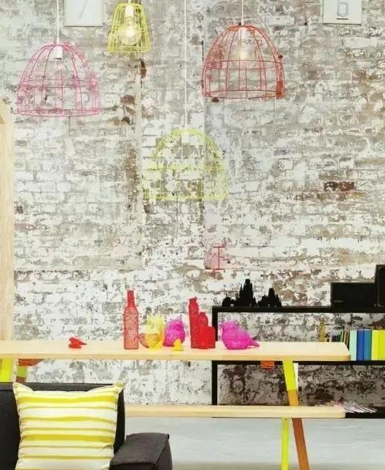 試一下這樣,淺色為主,讓磚頭的形狀顯露,配上淺色系列的家具,地板用清爽的地毯點綴,書桌、椅子,簡單掛畫,也可以收到不一樣的效果!