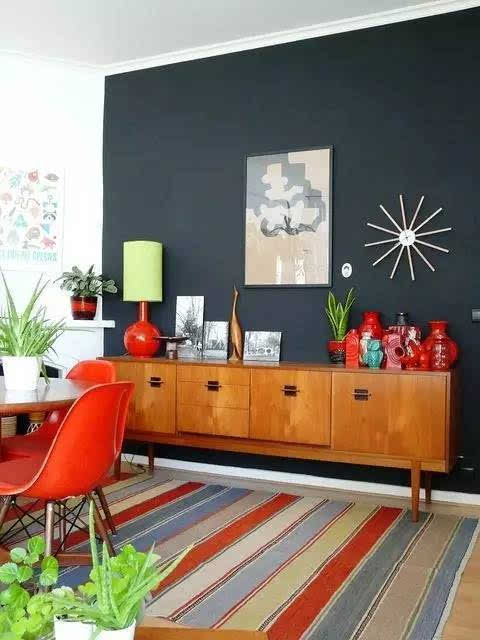 黑色典雅,五彩條紋地毯和暖色調(diào)家具相互映襯,朝氣蓬勃,各種小玩意的裝飾,充滿了設計感。