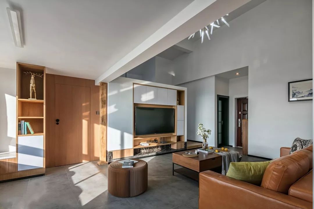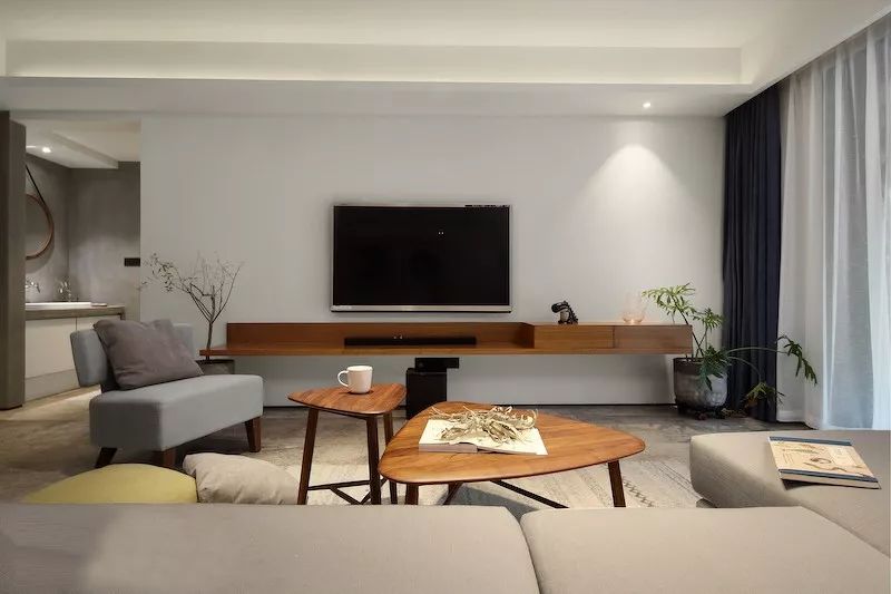 將電視墻設(shè)計(jì)成儲物柜的樣式,對于收納空間不足的家庭來說非常友好。