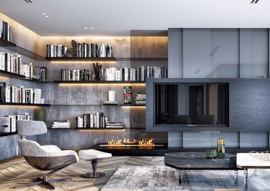 對于愛看書的家庭而言,沒有專屬閱讀區(qū)的家就無異于失去了“靈魂”。不過想要完成大規(guī)模地藏書,其實(shí)也并不僅僅局限于傳統(tǒng)的書房,客廳電視墻就是一個(gè)非常不錯(cuò)的選擇。