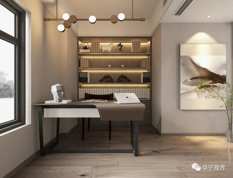 不取繁飾,空間布局和陳設(shè)都極盡簡約,一桌、一椅、一方書架,只取綠植為麗景,誠如《書齋說》所言:書齋宜明朗、清凈,不可太寬敞。
