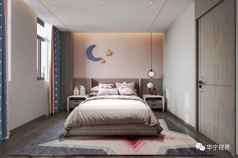 以為孩子打造專屬的成長空間為設(shè)計考量,巧用少女粉、清新白與灰色紋理墻面搭配,甜蜜夢幻而不失高級質(zhì)感。