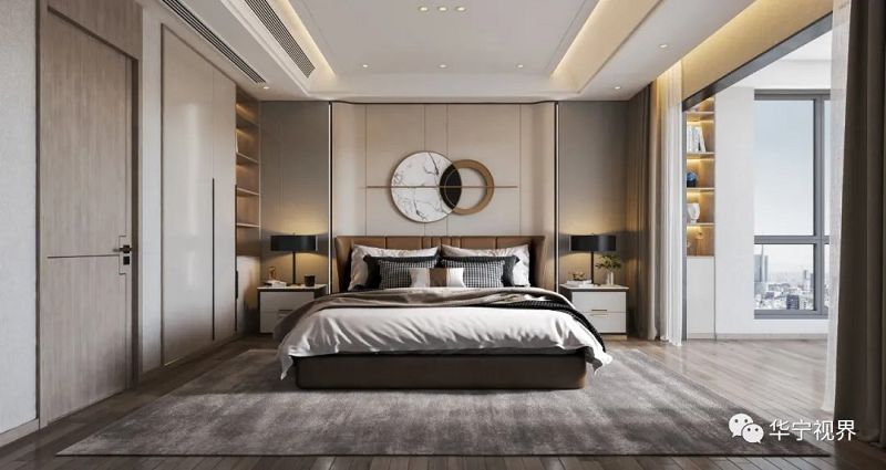 主臥低調(diào)素雅,基調(diào)溫潤,以當代的思想詮釋東方藝術(shù)意境,不同的藝術(shù)形態(tài)表現(xiàn)美學(xué)空間。去除繁雜的裝飾,簡潔淡雅,營造出穩(wěn)重舒適而不失活力的空間氛圍。早晨陽光充滿臥室,每日蘇醒的美好心情就在這里發(fā)酵。