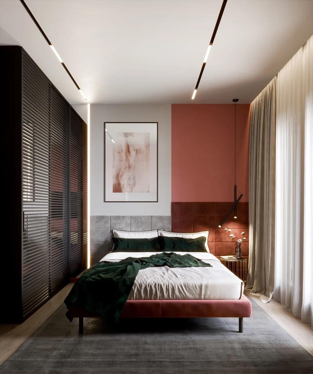 也可以在大面積的顏色上稍加一些灰調(diào),有效避免視覺(jué)上過(guò)于凌亂和跳脫,增加了空間的質(zhì)感和高級(jí)感。