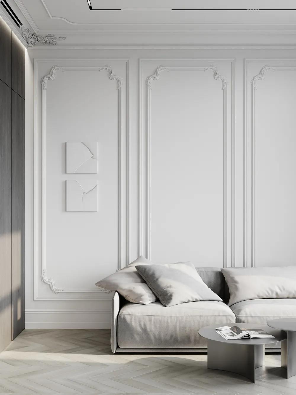 石膏線運(yùn)用在墻面上,即使選用了最簡(jiǎn)單的樣式,也會(huì)讓人感覺(jué)很精致。