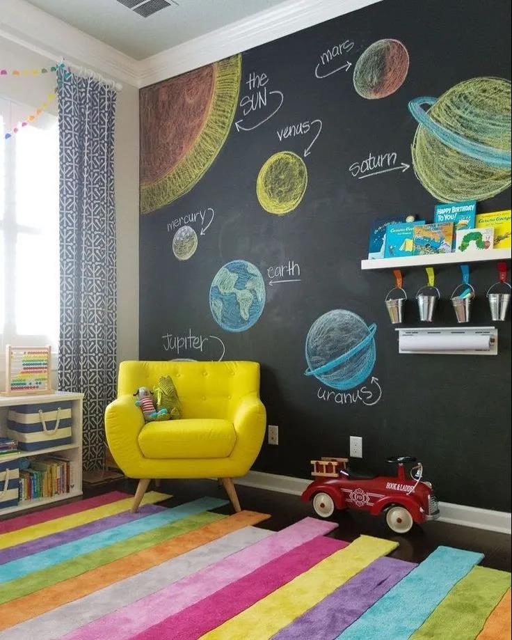 在家里的墻上寫寫畫畫,似乎每個(gè)小孩子都喜歡這樣做。在他破壞家里整潔的墻面之前,給他們?cè)煲幻胬L畫墻吧~