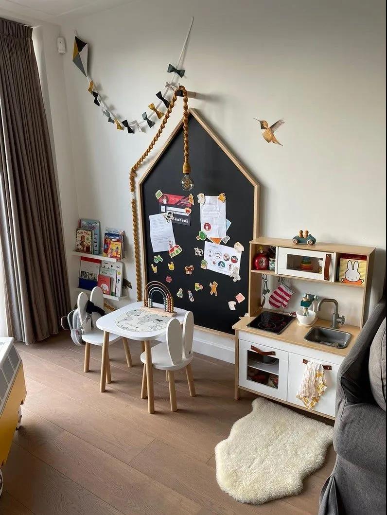 可以是一整面的繪畫墻,也可以是黑板架與書架等等結(jié)合而成的娛樂(lè)區(qū),讓孩子在家真正的釋放天性,從小培養(yǎng)良好的興趣愛(ài)好。