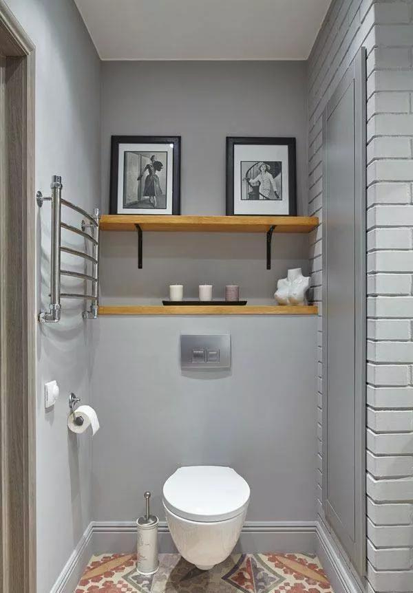 與柜子相比,在馬桶后方打造擱板或置物架,整體造型更為簡潔,操作起來也十分方便。