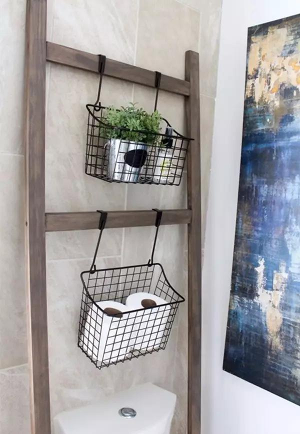 比如:他們會擺放一個小梯子在馬桶上方,靠墻安放,既不會占用過多的空間,又可以輕松解決收納的問題,這其實也是令人產生幸福感的小細節(jié)~