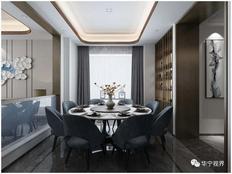 餐廳中的背景墻要與客廳背景墻相呼應(yīng)餐廳是一家人相聚的地方簡約的設(shè)計(jì)更顯清新雅致。