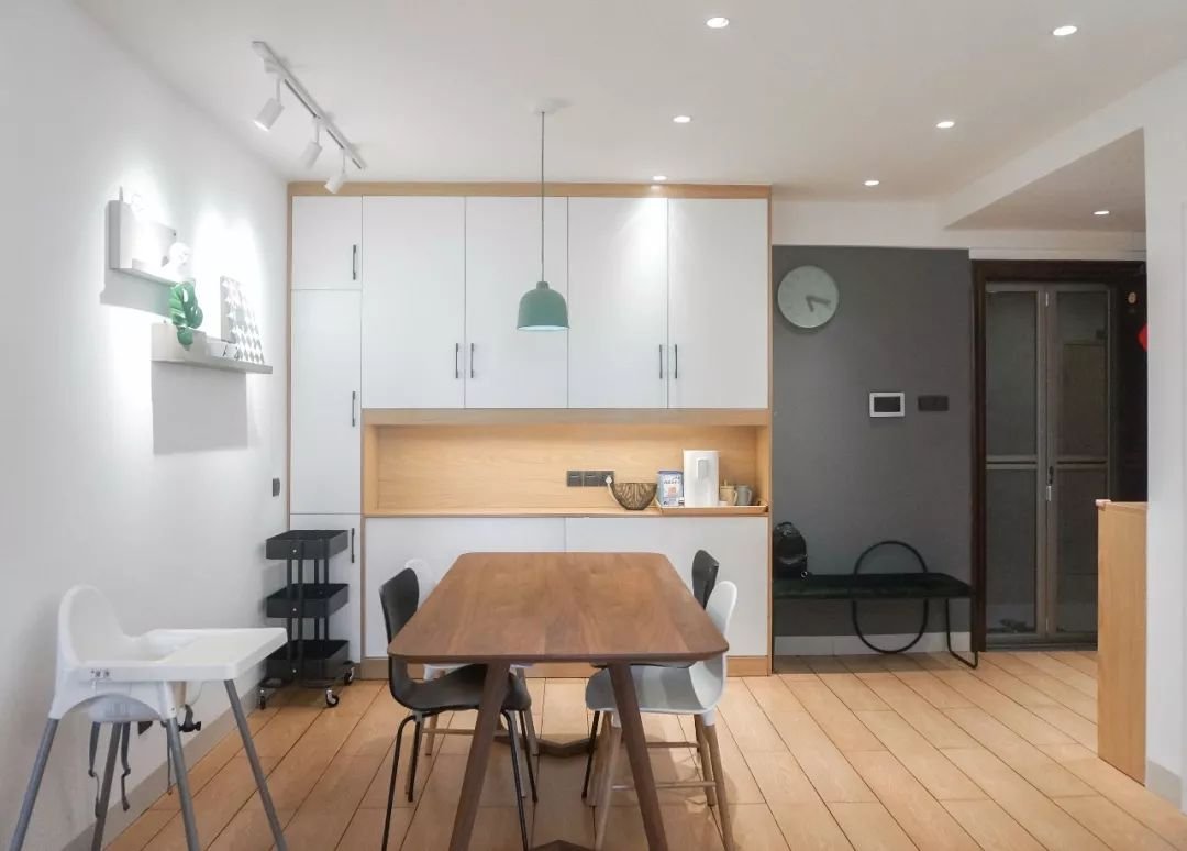 有凹陷的墻就完全可以利用,沒有的話也可以在做成一整面墻的餐邊柜,整潔大氣。