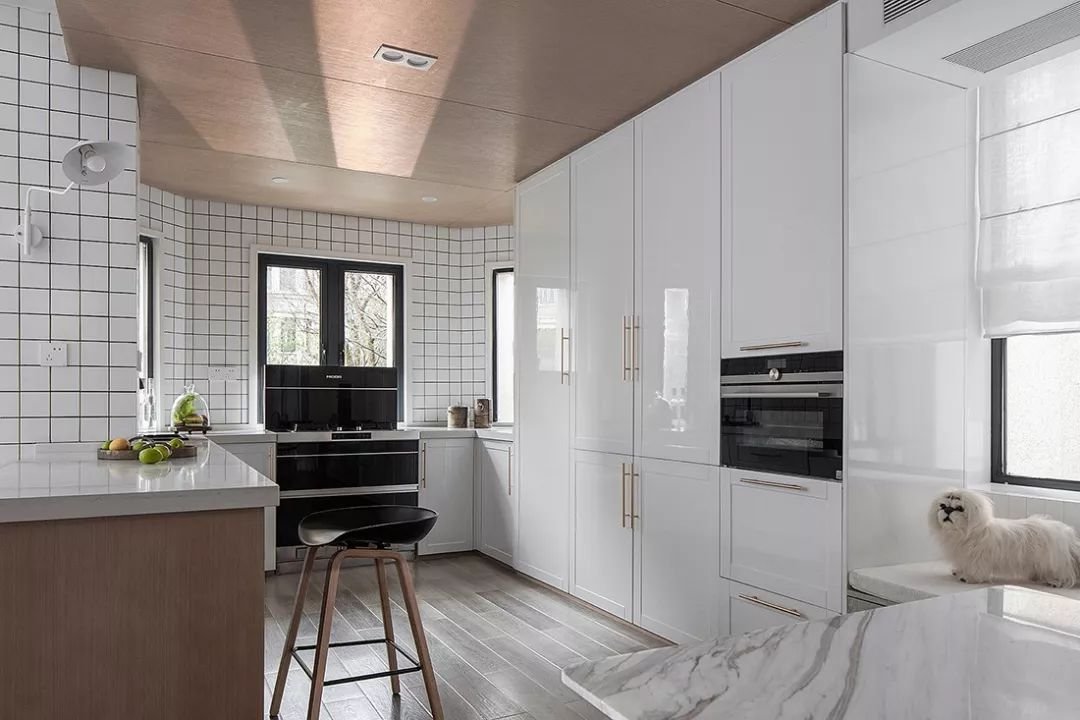 廚房差不多是家中電器最多的地方,尤其是烤箱、洗碗機(jī)、微波爐、消毒柜等這類廚具電器的體積都很大,因此特別適合做成內(nèi)嵌式的設(shè)計。