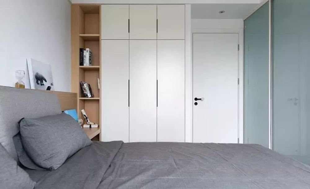 剛好利用凹陷的墻體空間,內(nèi)嵌式的衣柜可以與整體的臥室環(huán)境更好的融為一體,讓臥室空間更加寬敞,美觀又實用。