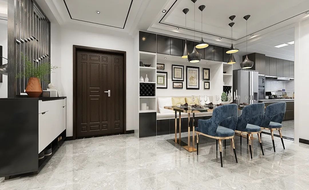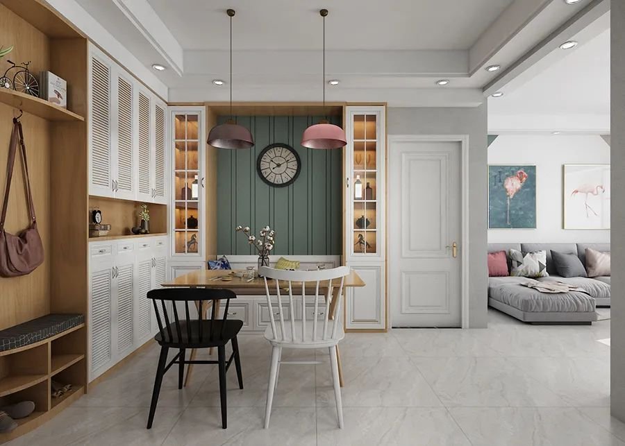 定制玄關(guān)柜嵌入卡座,輕松實(shí)現(xiàn)換鞋功能,節(jié)省空間。而且整體協(xié)調(diào)性更強(qiáng),視覺整潔。