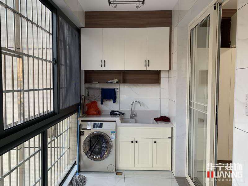 ▲陽臺的打造了強(qiáng)大收納柜,洗衣機(jī)與收納一體整體性非常強(qiáng)。