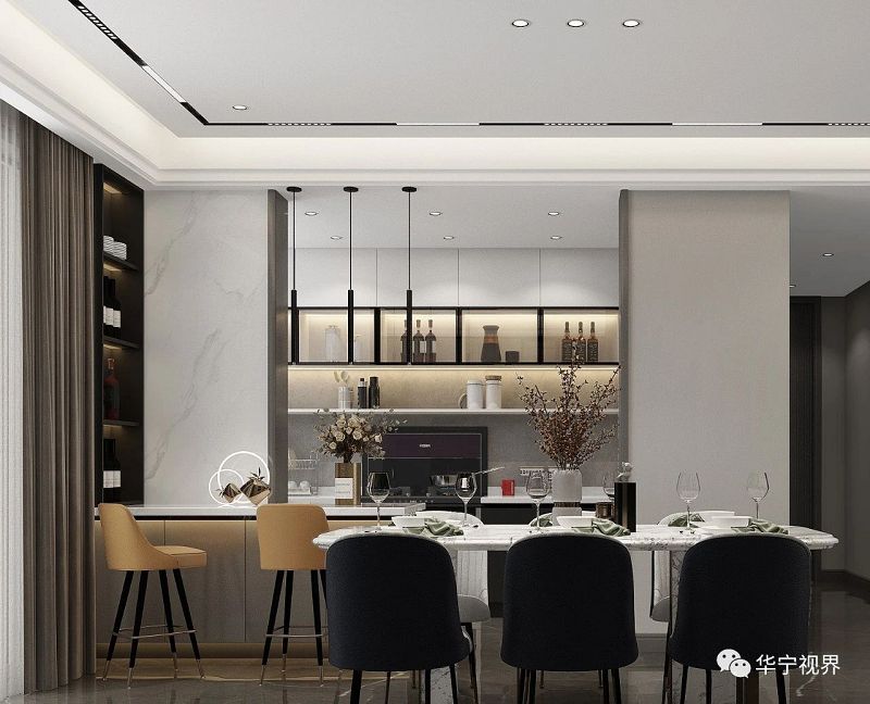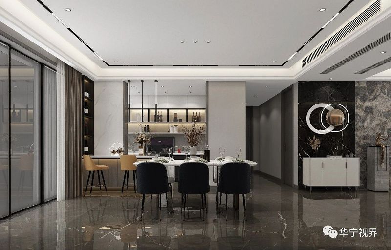 以自然的紋理、材質(zhì)、線性燈飾點綴修飾,呈現(xiàn)當代空間功能整合、美學(xué)并敘的開放式格局。