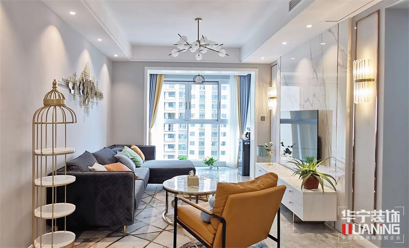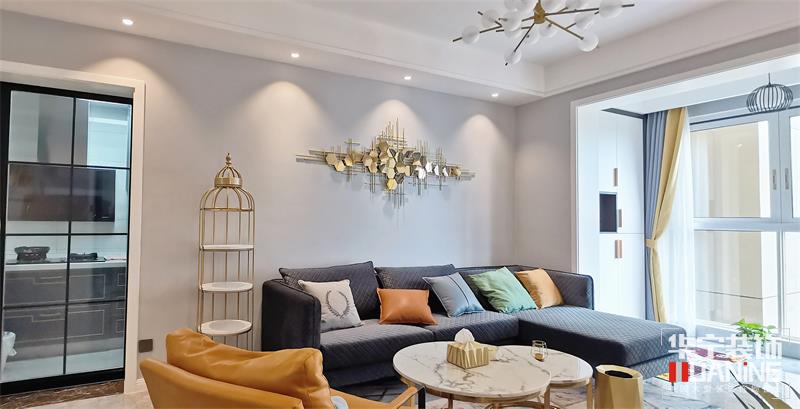 ▲ 吊燈、茶幾全都融入黃銅元素,配上一張舒適的沙發(fā),無需多言,輕奢韻味便躍然浮現(xiàn)