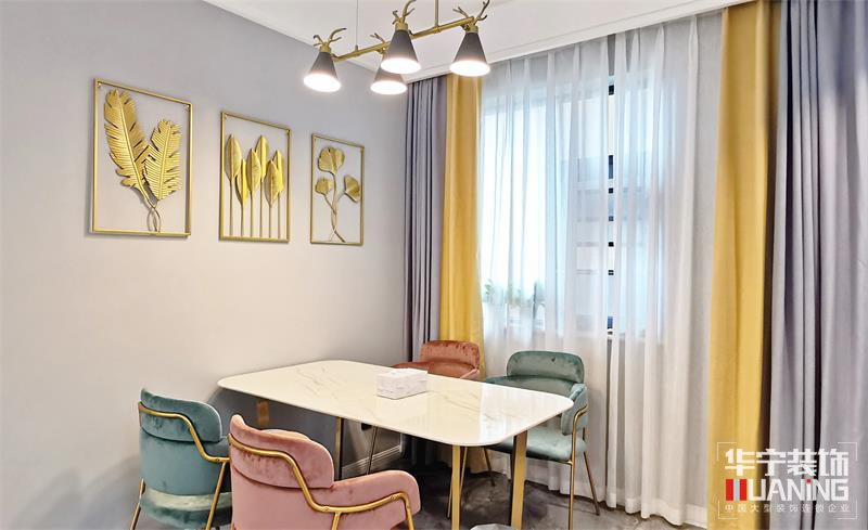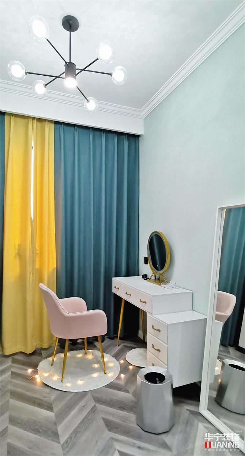 ▲ 臥室中黃色和深藍(lán)色的窗簾搭配更為大氣時(shí)尚,質(zhì)感非常好,粉紅色的單人椅結(jié)合精致的梳裝臺(tái),盡顯簡(jiǎn)約輕奢風(fēng)。
