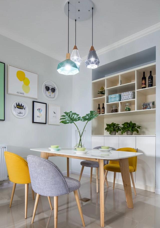 若喜歡活潑一點的氛圍,那么選擇帶有鮮艷色彩的吊燈,或是多種顏色造型組合的吊燈,也能讓餐廳顯得更加溫馨情趣。