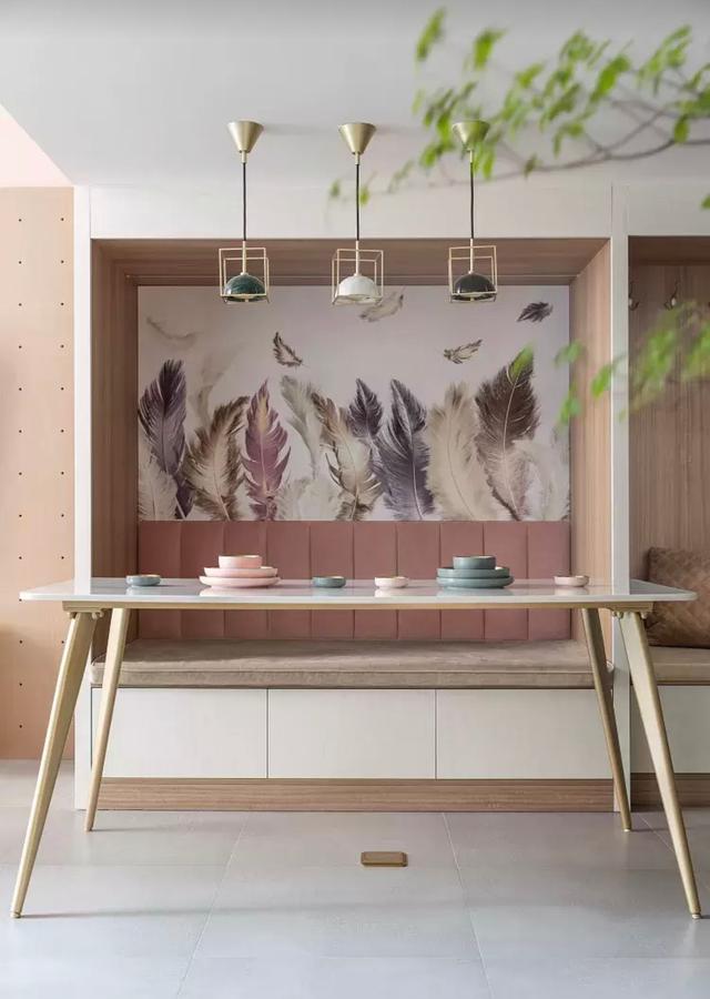 在輕奢風格的裝修搭配中,銅色的元素已然成為百搭卻華麗精致的元素,用作餐廳的吊燈,輕奢的銅色也是檔次十足的。