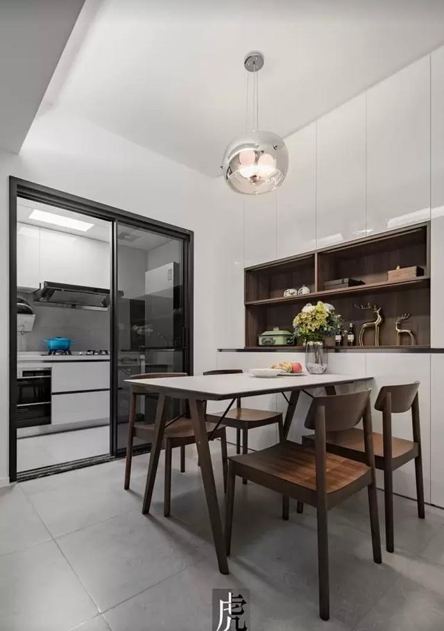 水晶或玻璃質(zhì)感的吊燈,也是一種較為常規(guī)的搭配,選擇一張獨特的水晶玻璃吊燈,也能增加餐廳的精致氣質(zhì)。