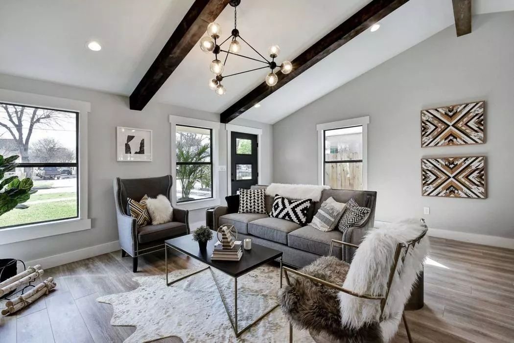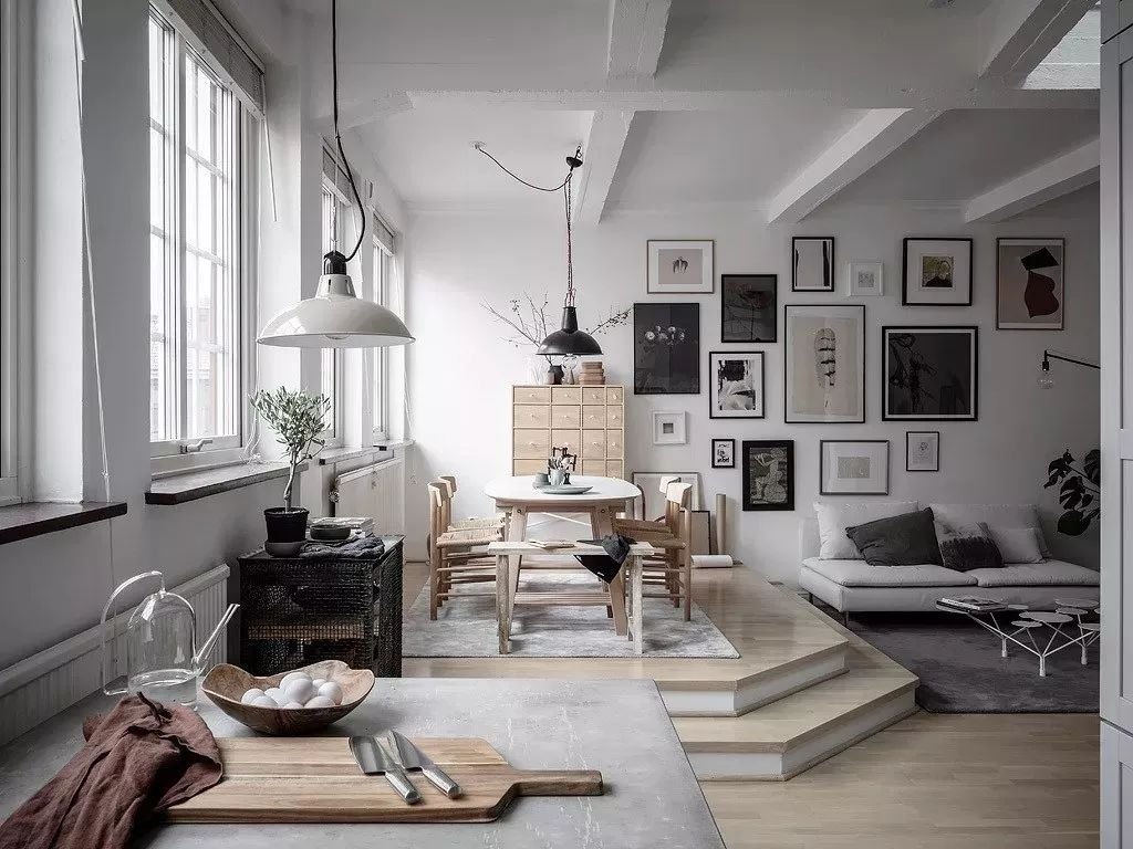 隔斷式吊頂大多選用的是木質(zhì)隔斷,也就是類似于假房梁,這樣設(shè)計(jì)與家具交相呼應(yīng),在空余之處穿插幾根吊燈,給人的感覺非常有設(shè)計(jì)層次。中間在懸掛幾個吊燈,樸實(shí)感的氣息瞬間涌上心頭。