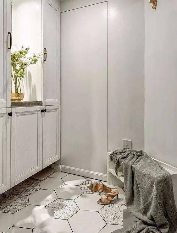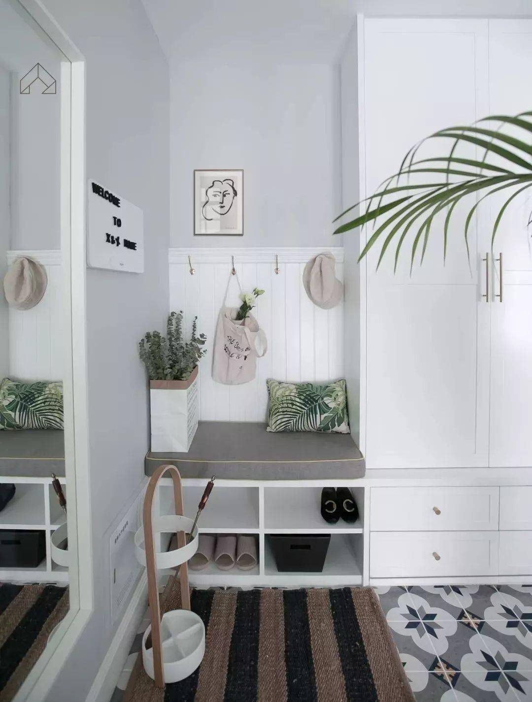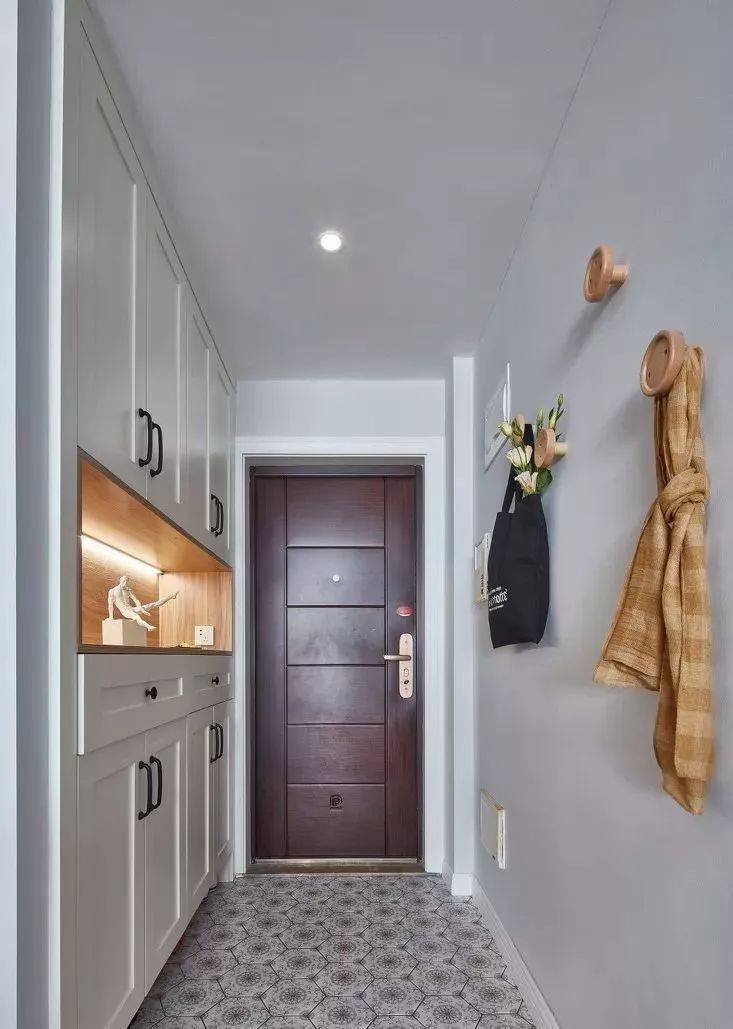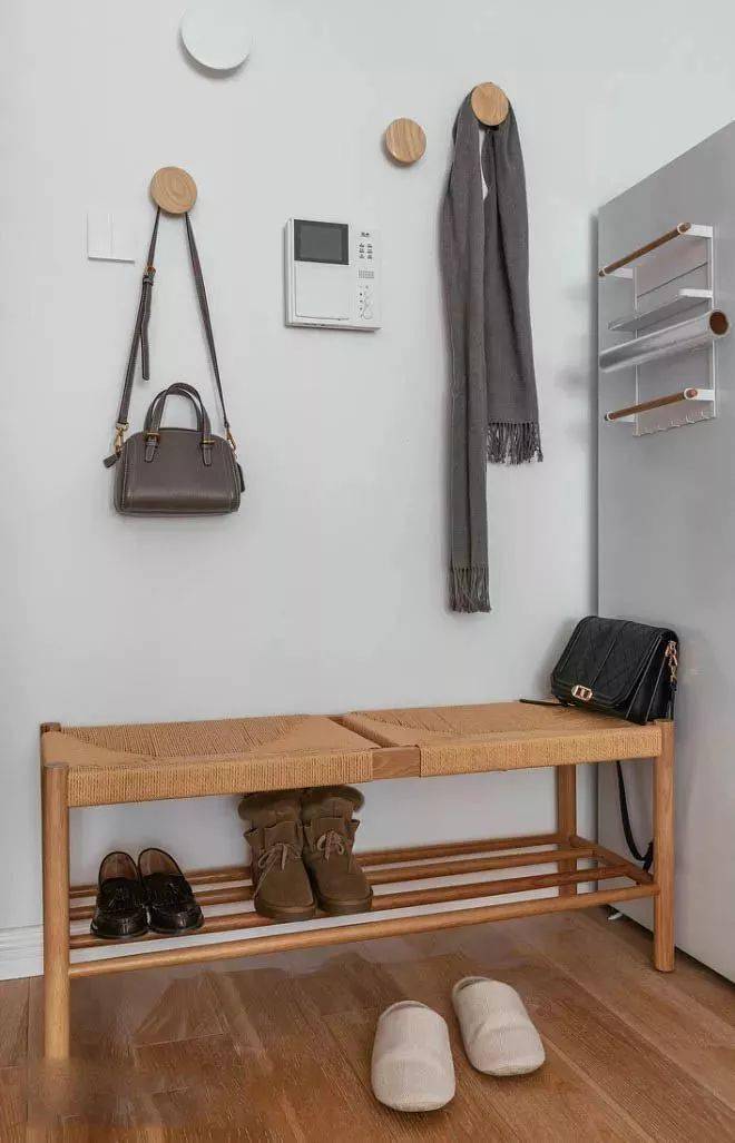 在玄關(guān)處安裝固定的掛架或掛鉤,放外套鑰匙包包等一些日用品,這樣美觀又整潔。