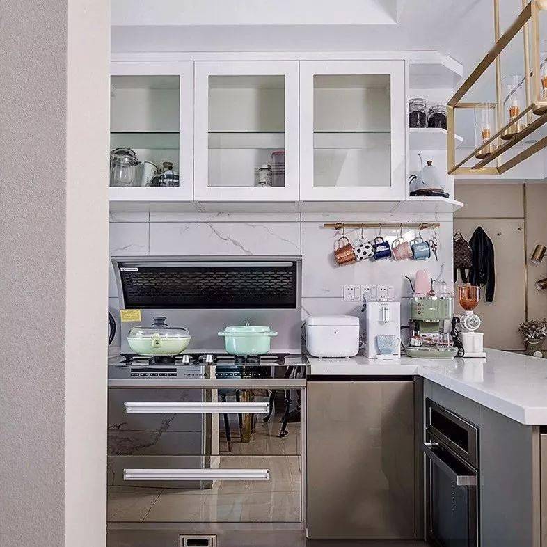在廚房安裝櫥柜時(shí),可以將封閉式櫥柜與開放式櫥柜相結(jié)合,既能方便來回拿放東西,又可以將不常用的物件隱藏起來。在做櫥柜的時(shí)候就要考慮是否需要嵌入電器。