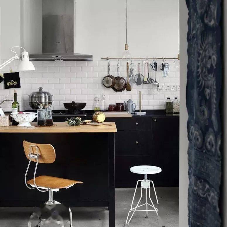可以在廚房的墻面上安裝掛桿和掛鉤,用來掛放一些物件,比如常用的刀具、鏟子等。有的屋主把廚房的墻面掛上不同的杯子,顏值也很高!