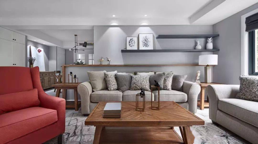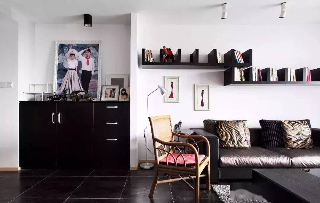 沙發(fā)背景墻不再是單調(diào)的墻紙和裝飾畫,做成隔板墻,放置一些小物件增加生活情趣。