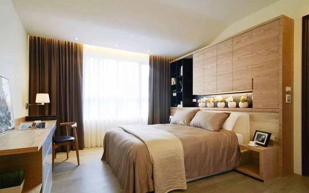 床頭收納有兩種形式。 一種是床頭上方做成嵌入式收納柜,一種是做成一體式組合收納柜。