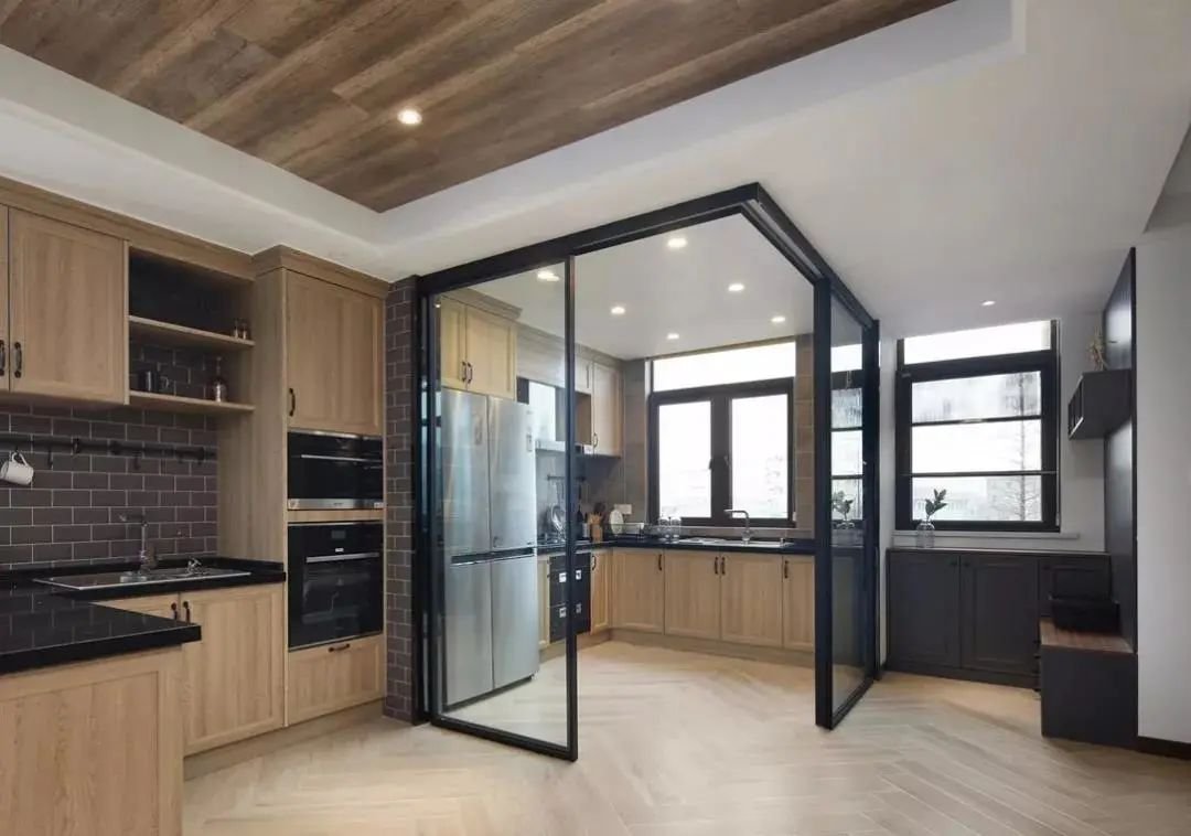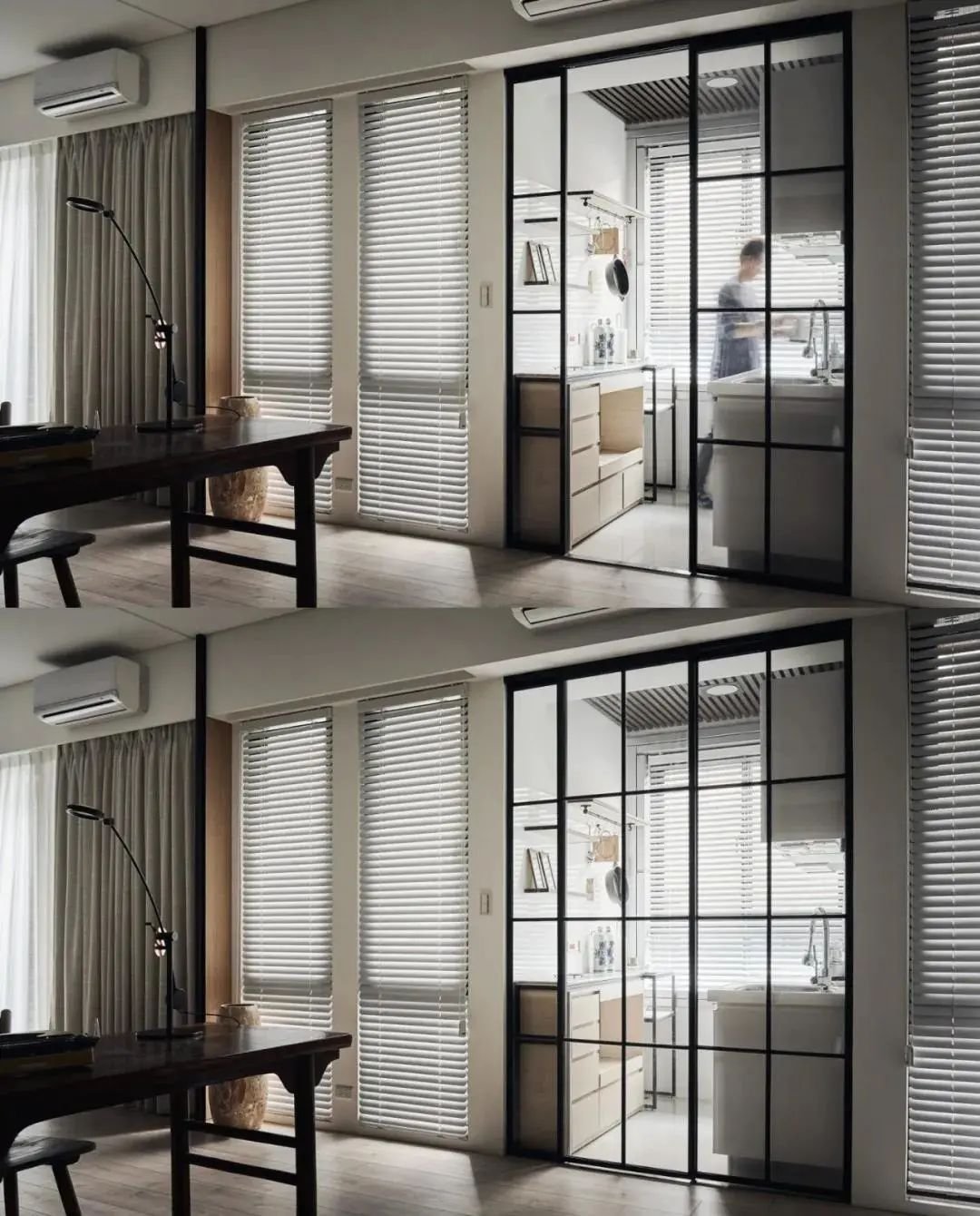 裝可開(kāi)合的隔斷代替實(shí)體墻,打開(kāi)是開(kāi)放式廚房,關(guān)上就是封閉的廚房: