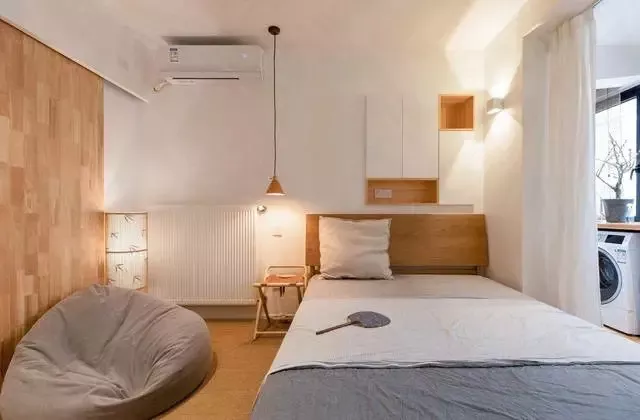 臥室空間不大,可以選擇體積小的床,放棄雙過道,靠墻擺放,這樣可以增加房間的活動面積和收納空間。