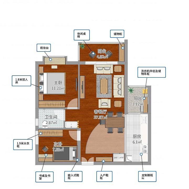 ▲ 本案根據業(yè)主需求,在簡約現代中加入復古的元素,客廳采用北歐風格,營造放松隨意的休閑空間,臥室則設計為美式風格,增添溫馨舒適的環(huán)境。