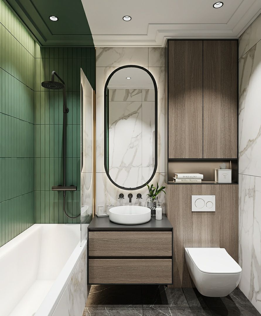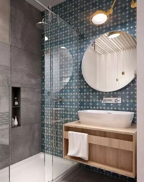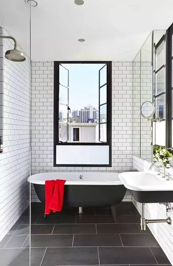 如果擔(dān)心隱私曝光,你可以使用磨砂或有色玻璃,這依然可以達到很多光線透射的效果,不會讓你在淋浴時感到局促壓抑。如果不是特別需要,建議放棄浴缸,安裝一個淋浴間足矣。浴缸會消耗大量寶貴的空間,而使用率又極低。