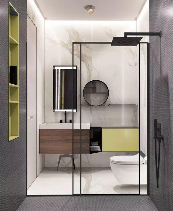 擴大空間另一個很好的方式是用玻璃來做門或者淋浴房的隔斷。視覺上的延展讓空間看起來更大。尤其是在淋浴的時候。