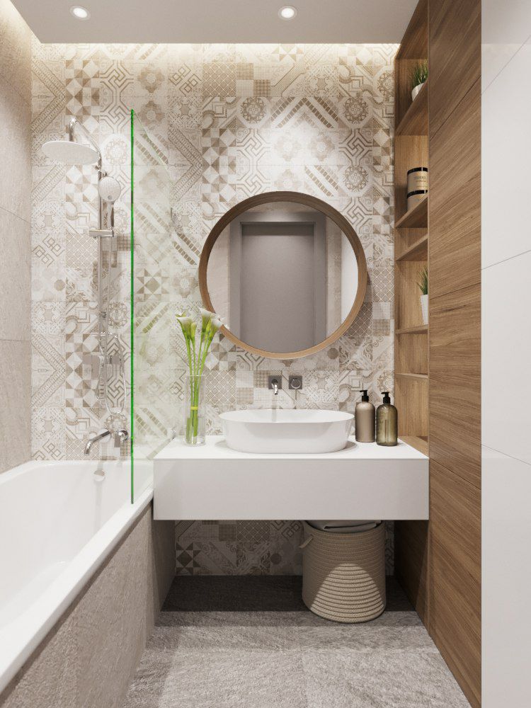 如果你不是白色的粉絲,可以通過溫暖的米色,柔和的灰色甚至粉色系(粉藍、粉紅等)來營造空間的寬闊感。選擇一款品位高雅的瓷磚,其余的墻面選取與之搭調(diào)的色系。整體效果寧靜而溫馨,不會造成視覺破裂而縮小你的空間感覺。