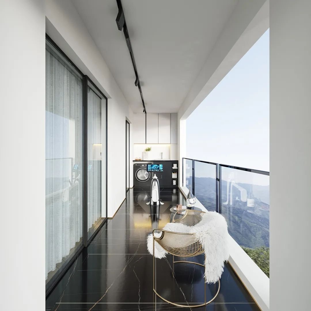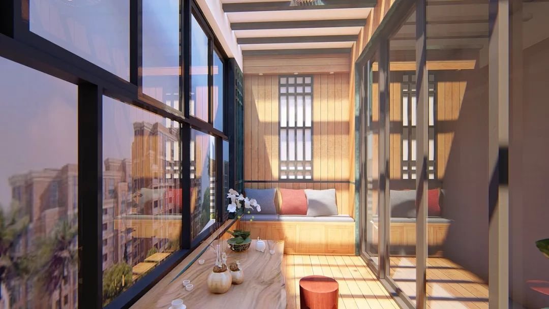 除此之外,還可以安裝鋼化玻璃對陽臺進行封閉,也就是我們常說的陽光房設(shè)計。因為玻璃的通透性強,不遮擋視線和陽光,還非常的美觀大氣,同時還具有防潮防水等一些功能。