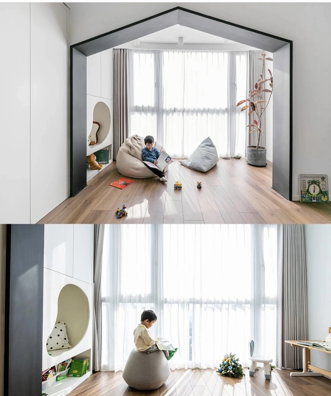 可以考慮在合適的空間為孩子打造一個小的閱讀區(qū),孩子小的時候,也可以供大人使用。