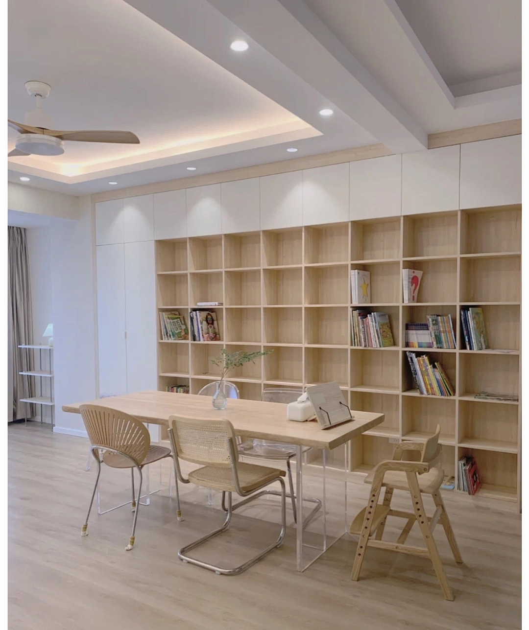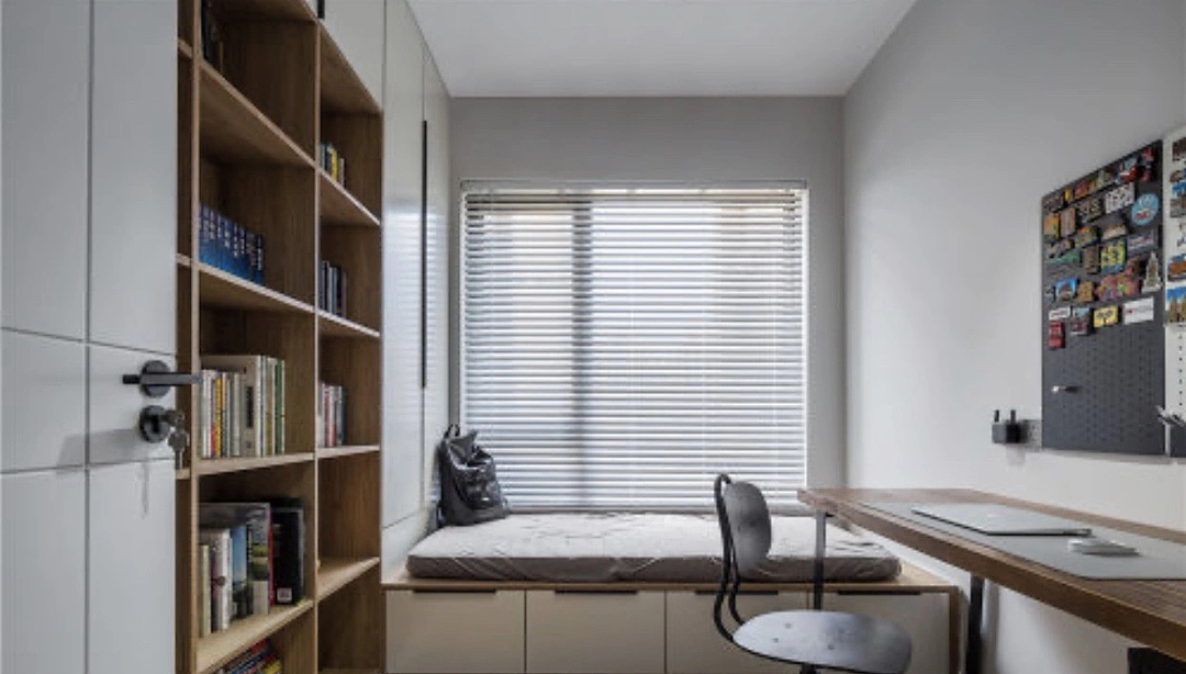 家里有孩子,沒有書架是不可能的,尤其求知欲年齡段的孩子最需要一個閱讀和學習氛圍的空間。
