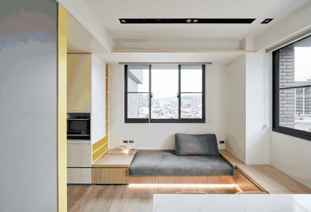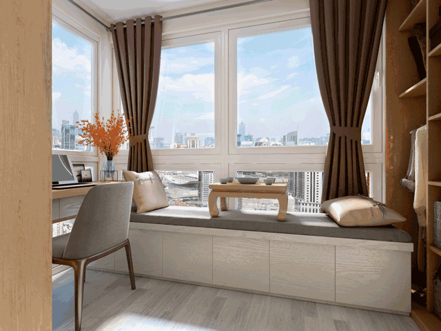 飄窗增加榻榻米升降臺(tái),或直接加上小茶幾,閑暇之時(shí)喝喝茶、發(fā)發(fā)呆......