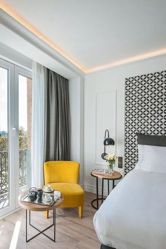 兩個(gè)面積相同的空間,亮色顯得寬大,暗色顯得狹小。運(yùn)用這個(gè)原理,可以對(duì)室內(nèi)幾個(gè)面進(jìn)行明暗對(duì)比來擴(kuò)展空間。室內(nèi)各個(gè)界面配色的明暗、輕重不同,會(huì)對(duì)室內(nèi)空間擴(kuò)展產(chǎn)生重要作用。