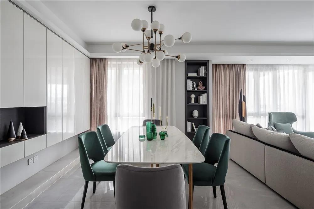 餐桌餐椅與客廳的裝修風格保持一致即可,建議可以選擇有設計感、造型別致的餐燈。