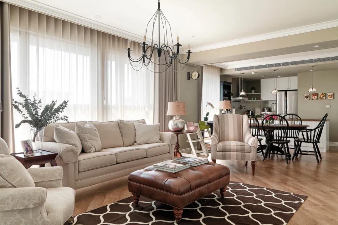 一般客廳面積會稍大于餐廳一些,如果整體空間夠大,那么餐廳在面積充足的情況下,客廳即使占用比例較大也不會有不協(xié)調(diào)的感覺。