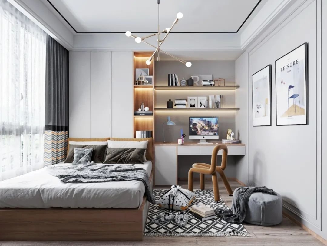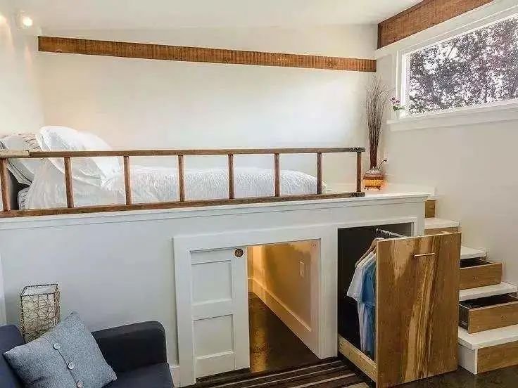 如果家里空間實(shí)在局限,沒有條件也可以創(chuàng)造條件,通過抬高床架的方式盡力挖掘出一個迷你衣帽間,讓你的臥室充滿更多的趣味性與可能性。