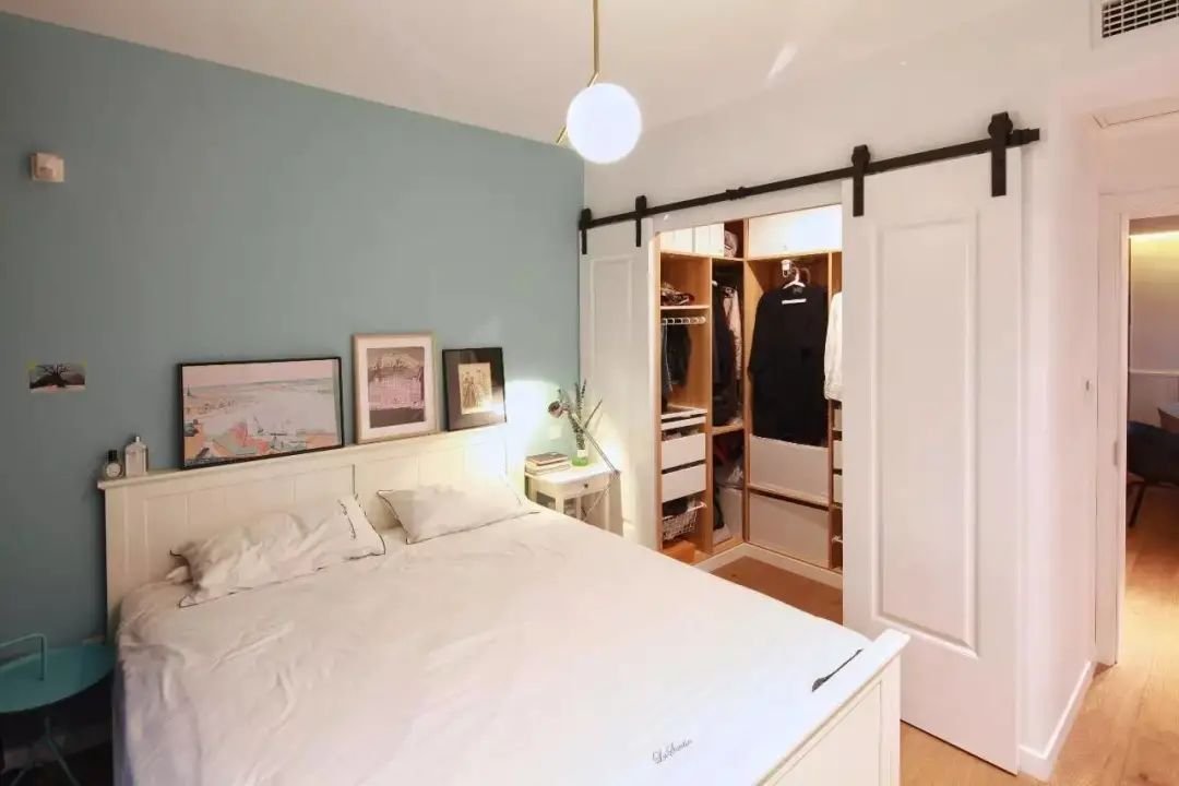 布置臥室時,一般都把床頭設(shè)置在靠墻的位置。如果換個思路,將床頭板背后作為隔斷,在床頭后方就能隔出一個獨(dú)立的衣帽間。一室二用,再幸福不過了。